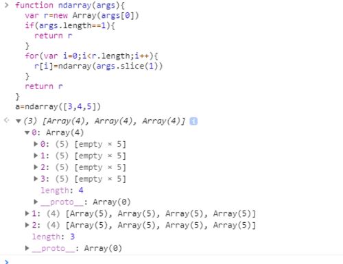 鶏が困っていたので作りました。 javascriptで多次元配列を作ります。 関数 function ndarray(args){ var r=new Array(args[0]) if(args.length==1){ return r } for(var i=0;i